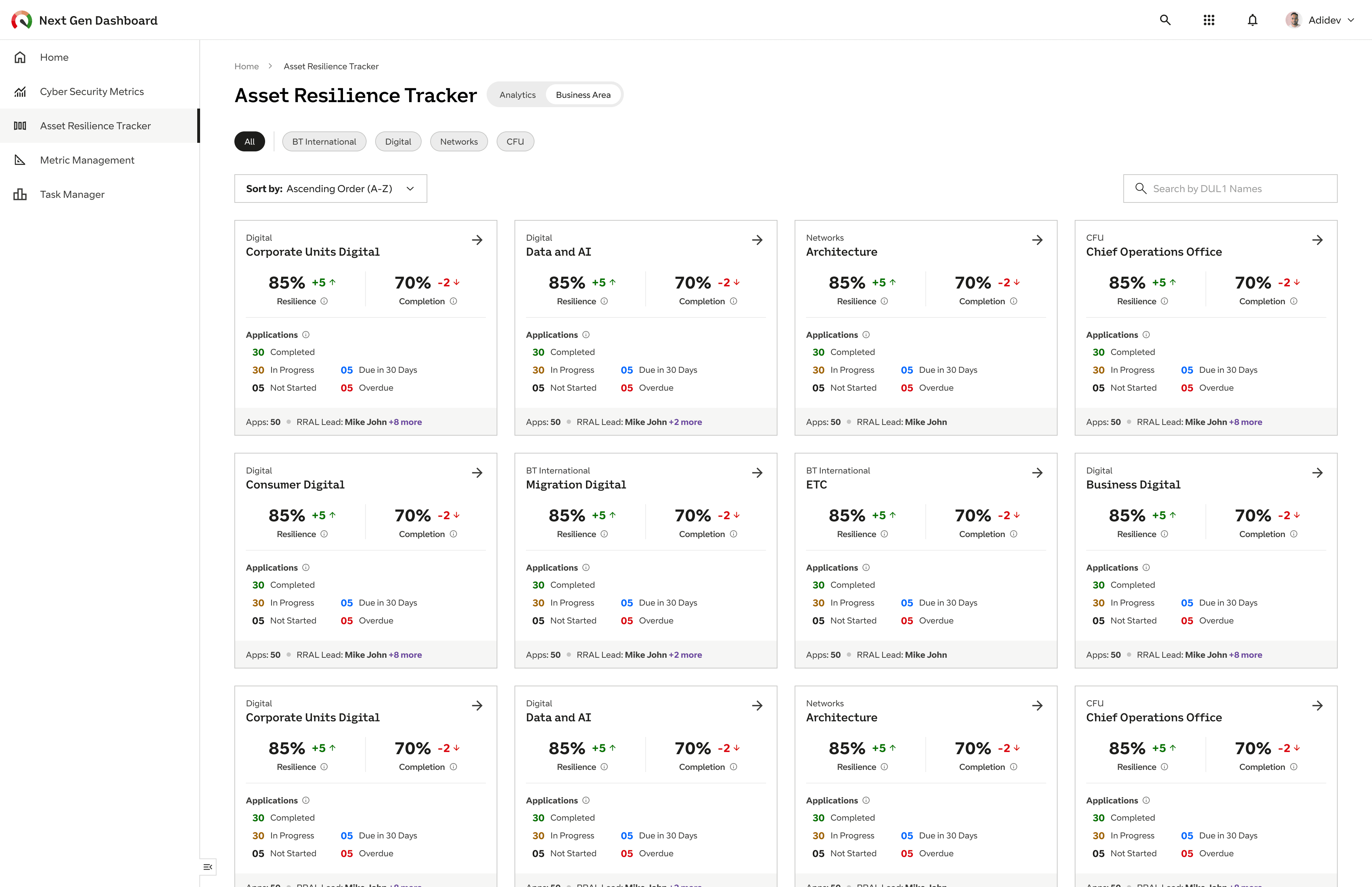 We can now compare performance across different business units, immediately isolating "hotspots" of non-compliance. This allows the Ex-Co to prove the value of resilience efforts and precisely target interventions where they will have the biggest impact.