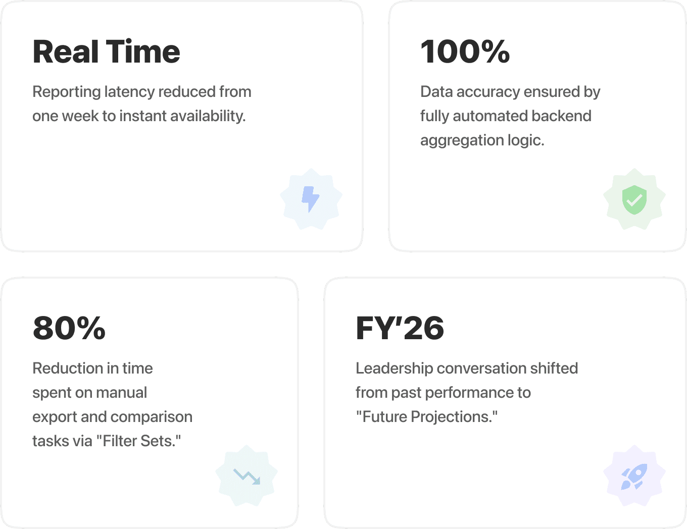 The Next Gen Dashboard facilitated an end to a highly fractioned and manual process and has made it very efficient.