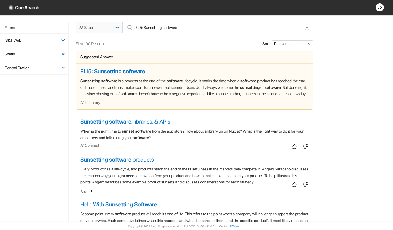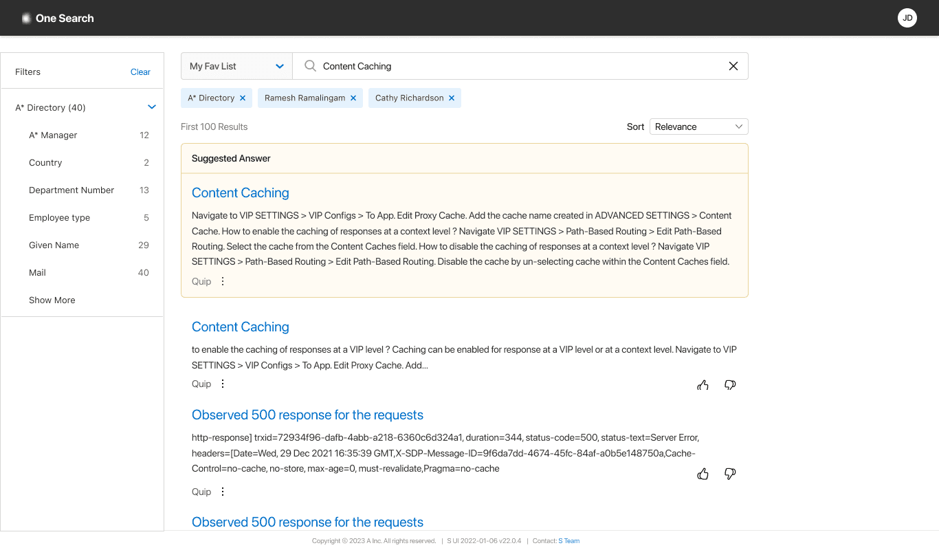 The launch of the One Search engine brought a radical change from the original state of a set of information silos to the existing optimum state of a common system. The common search engine has successfully given back thousands of hours of productive time of the workforce.