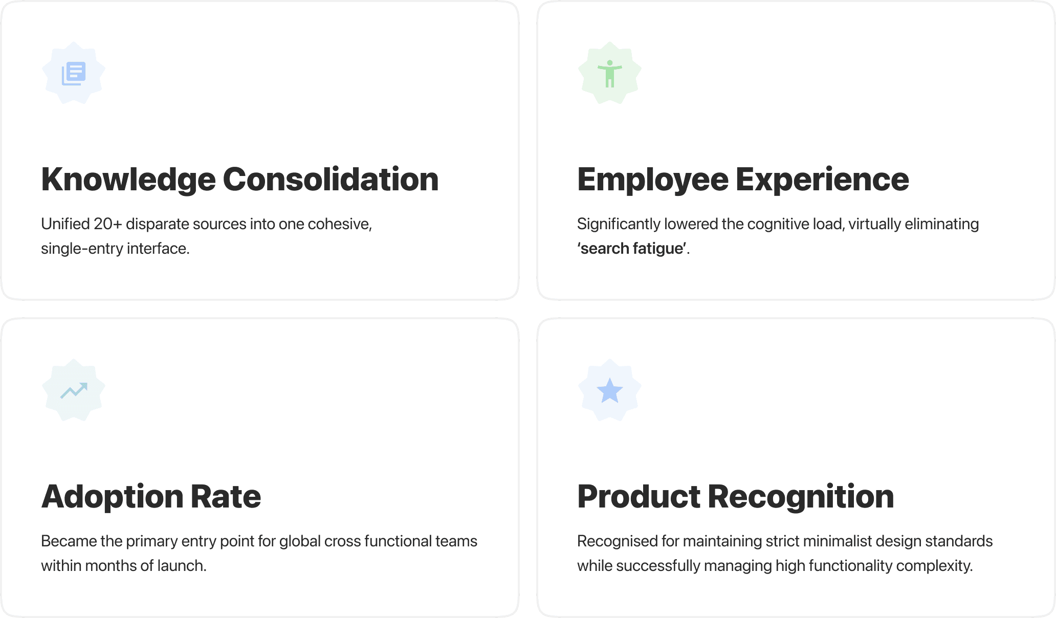 I was assigned to work with the cross functional team and also engage with the employees in understanding their pain points while analysing the research insights report in designing the search experience.